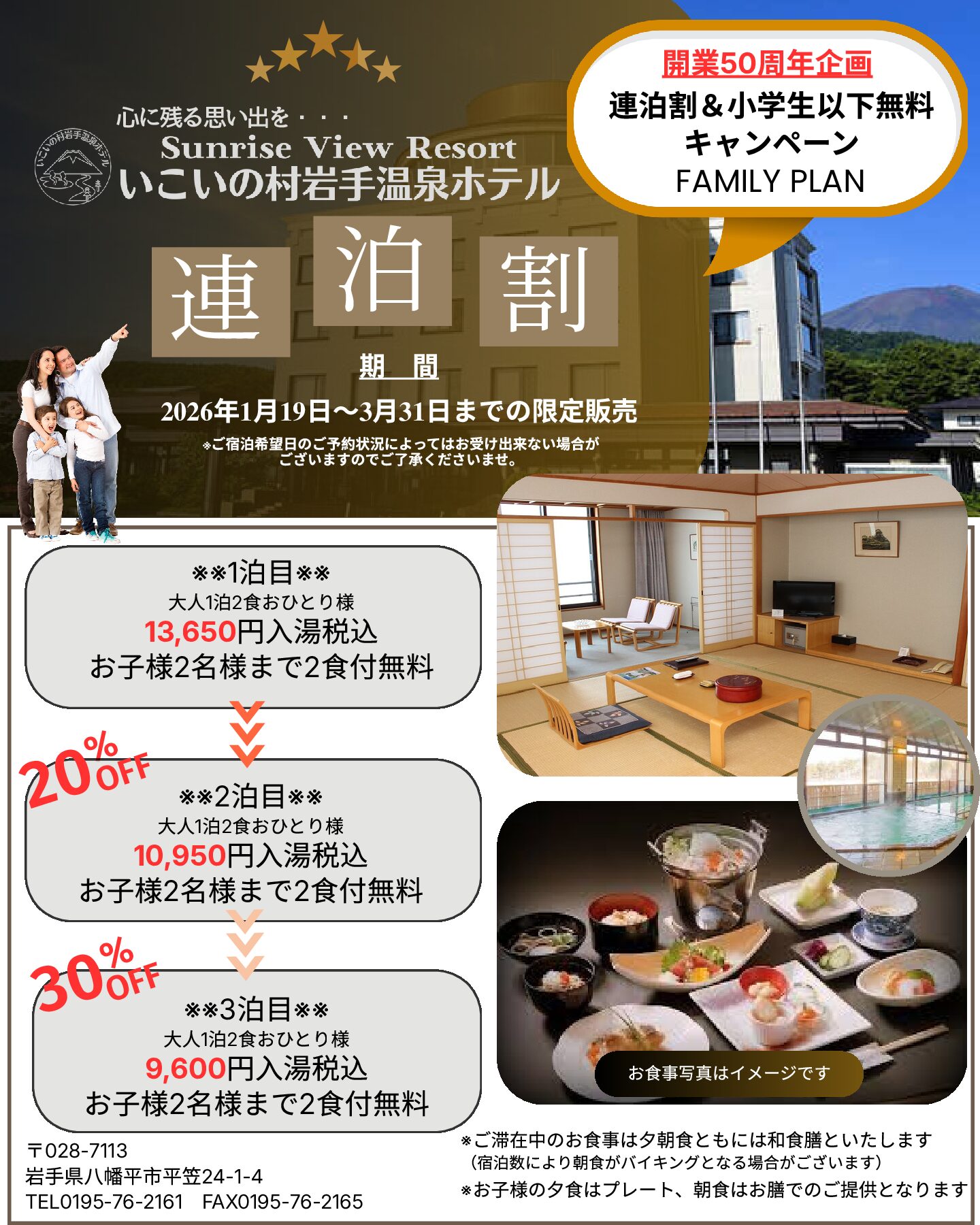 宿泊のお客様限定!! 今年も八幡平リゾートパノラマスキー場&下倉スキー場のリフトご優待割引券をご希望の方に配布いたします。 共通1日券がなんと・・・ 定価 ご優待価格 大人 5,800円 4,700円 シ...